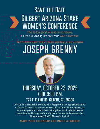 Join us for an inspiring evening with Joseph Grenny, bestselling author of Crucial Conversations and co-founder of The Other Side Academy , as he shares powerful principles to strengthen relationships, deepen connection, and bring greater unity to ou