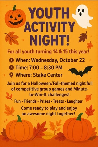 Youth Activity for youth turning 14 and 15 in 2025. 7-8:30pm at 777 E Elliot Rd