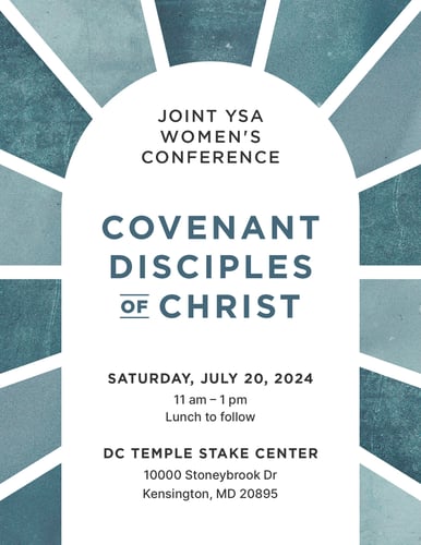 Joint YSA Women's Conference: Covenant Disciples of Christ! Save the date for this wonderful conference for Relief Society sisters in our stake and the D.C. YSA North Stake.The conference will include a keynote speaker, breakout sessions, and a service activity. Please contact the Stake Relief Society Presidency if you have any questions!