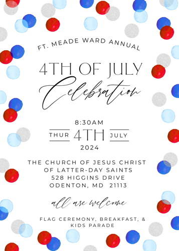 Come join us to celebrate our nation. We kick off the festivities with a flag ceremony, followed by breakfast and then a children’s parade. Kids are welcome to decorate bikes and scooters in the red, white, and blue and join together in a parade around the church parking lot.