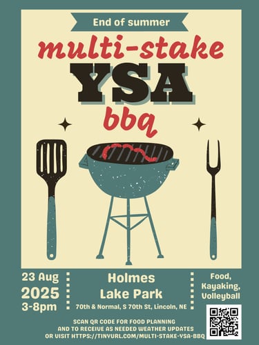 All YSA (18-35 years of age) are welcome to join. There will be food, kayaking and volleyball. Please use the following link to RSVP: https://docs.google.com/forms/d/e/1FAIpQLSdUX_qhKJfG_oDaUfzmNV3yiX29b_GOvwODWFasPUN8urY9sw/viewform or by scanning the QR code in the graphic.
