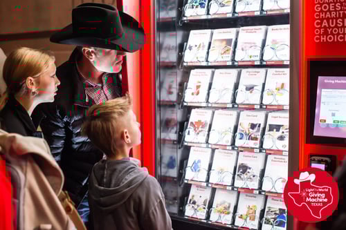 Light the World this holiday season by visiting the Giving Machines on Main Street in Grapevine, Texas. Bring your family and friends and support 5 local and 2 international charities by purchasing items from the Giving Machines. For more information