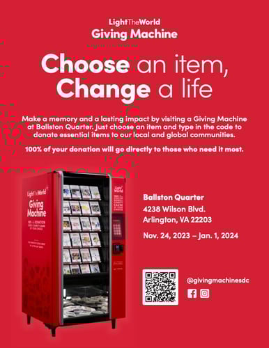 Choose an item, change a life. Make a memory and a lasting impact by visiting a Giving Machine at Ballston Quarter. Just choose an item and type in the code to
