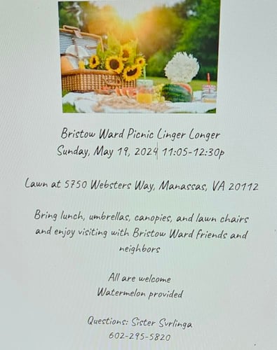 All are welcome to the picnic linger longer! Bring lunch, umbrellas, lawn chairs, and enjoy meeting new people, visiting with neighbors and chatting about summer plans! All are welcome and invited!
