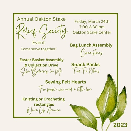 Reserven la fecha para nuestra actividad de servicio el viernes 24 de marzo de 7 a 8:30 p. m. en el Centro de estaca de Oakton.