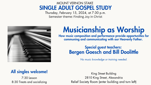 Please join us as we discuss how music composition and performance provide opportunities for communing and communication with our Heavenly Father.